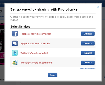 Photobucket begon als opslagplaats voor beeldbestanden en dat is nog steeds de belangrijkste functie. Nadat je een gratis account aanmaakt, krijg je 500 mb aan eigen webruimte. Hier upload je prenten en ook videobestanden naar toe. In een overzichtelijk manager zet je het materiaal in zelf aangemaakte mappen. Alles wat je op Photobucket plaatst, laat je hierna ook eenvoudig zien aan de rest van de wereld: zo vind je onder elke afbeelding knoppen voor het delen via Facebook, Twitter, e-mail of weblink.