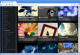 Om mooie foto's te vinden op Photobucket heb je geen account nodig. Op de homepagina klik je op een categorie die je aanspreekt, waarna de browser je automatisch naar de fotobibliotheek voert. Materiaal gaat van retro & vintage tot superhelden en gaming: naast artistieke fotografie vind je op Photobucket dus ook allerlei luchtig materiaal. Vrijwel alle plaatjes beschikken over 'tags', labels die ervoor zorgen dat soortgelijk materiaal in dezelfde zoekopdrachten opduikt.